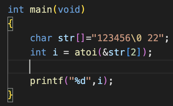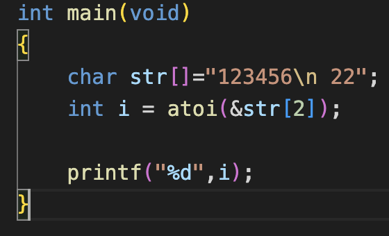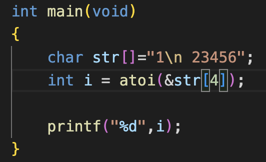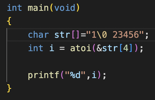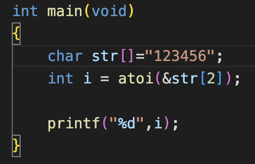 int i = atoi(&str[2]); 라는 코드가 있다면 이건 str[2]부터 str배열의 끝까지를 인티저로 바꾼다는 뜻이었습니다.