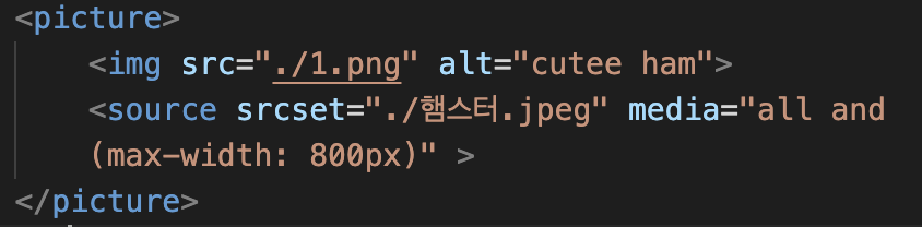 <source srcset="./햄스터.jpeg" media="(min-width: 800px)" >