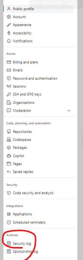 그래서 토큰을 발급받아서 저기 넣는 뻘짓을 했는데 어찌저찌 뒤지다 보니 깃허브 시스템이 내 토큰이 공개되었다고 자동으로 지우고 있는걸 발견했다. 혹시 나도?! 싶은 분들은 설정에 있는 security log에서 확인해보자