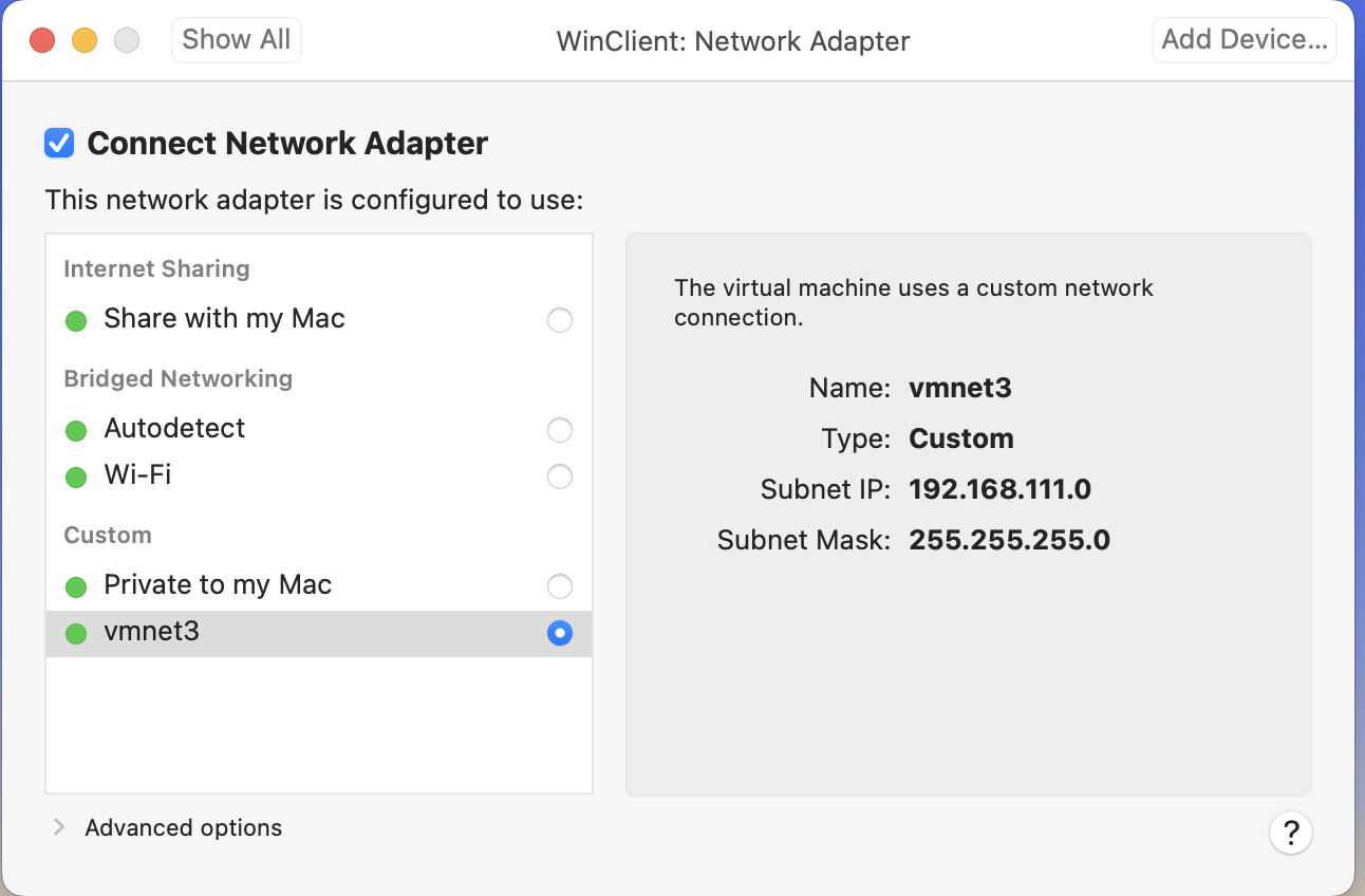 나는 지금 서브넷 ip를 설정해놓았기 때문에 192.168.111.1로 잡혀있는데 원래는 192.168.xxx.1로 잡혀있었다. 이게 어떻게 vmware ip인줄 알수 있냐? 라고 한다면 아래에 vmnet3 vmnet4가 member로 잡혀있는데 나는 이걸 보고 음~ 대충 됐구나 하고 생각했다...