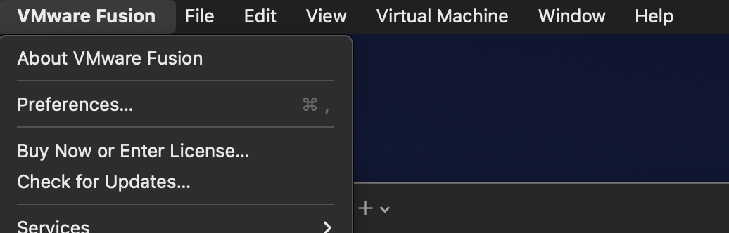 설치를 완료했으면 설정으로 들어가준다 vmware - preference