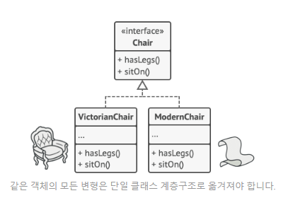 - 하나의 팩토리에서 생성된 제품들은 항상 같은 스타일임이 보장되어야 합니다.